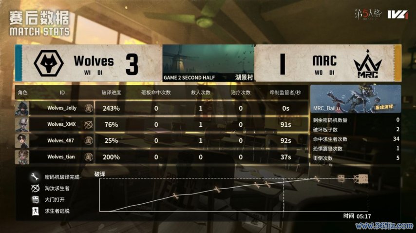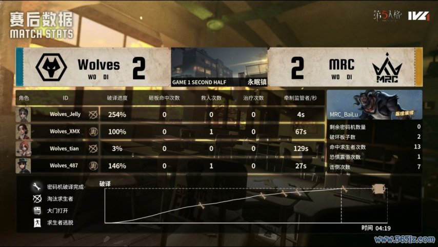成王人Wolves的求生者遴荐了机械师、魔术师、大副、弓箭手;MRC的监管者BaiLu遴荐了“跛脚羊”。(BAN先知、古董商、守墓东谈主、红运儿)