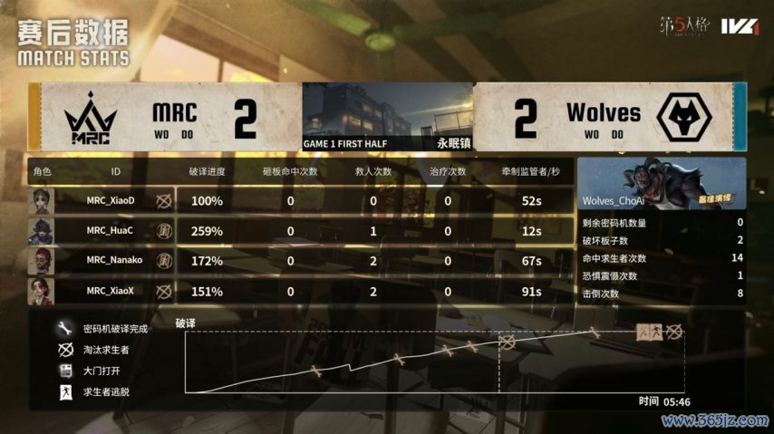 MRC的求生者遴荐了病患、欣喜学家、守墓东谈主、失火探听员(BAN歌剧演员);成王人Wolves的监管者ChoAi遴荐了“喧嚣”。(BAN古董商、“逃走大师”、佣兵、空军)