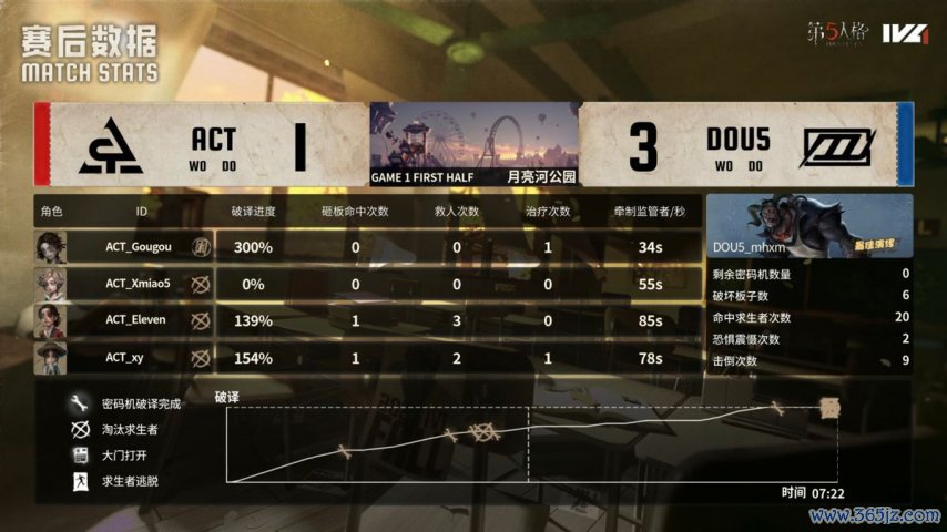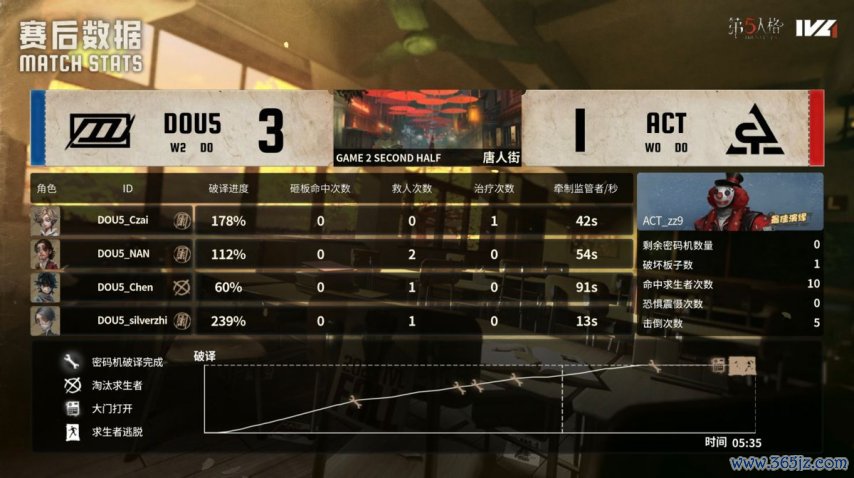 DOU5的求生者摄取了先知、花匠、守墓东说念主、遨游家;ACT的监管者zz9摄取了歌剧演员。(BAN机械师、大副、古董商、木偶师)